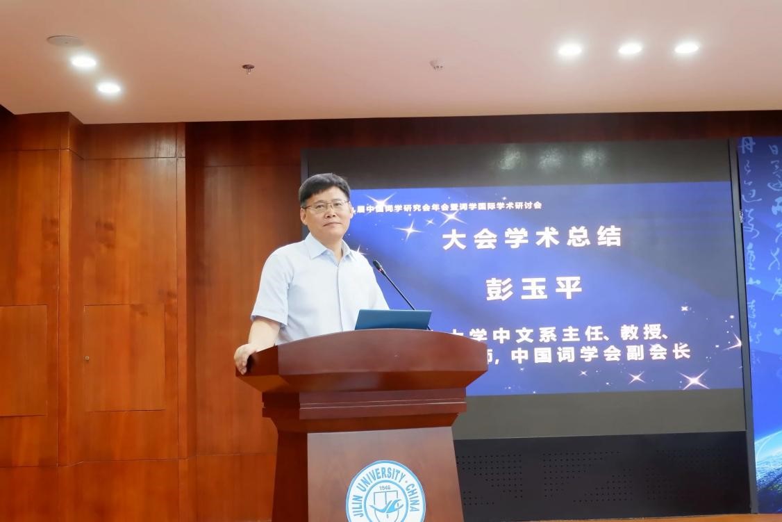 7月18日下午的闭幕式由内蒙古民族大学文学与新闻传播学院院长郝青云教授主持。首先,三个小组的汇报人分别代表本组汇报了两天的研讨成果;彭玉平教授对本次词学会进行了全面而精彩的学术总结,彭教授指出,词学研究应注意理论与文献的结合、关注研究对象的特殊性、秉持客观与理性的精神、遵循逻辑与体系的认知、在自然明晰地表达学术观点的同时注意文字的美感。嗣后的颁奖环节,词学会张仲谋副会长与陈水云秘书长分别宣读本届词学会优秀论文获奖人员名单与第七届夏承焘词学奖获奖人员名单,并由王兆鹏会长,孙克强、张仲谋、彭玉平等副会长为获奖人员颁发获奖证书;本届词学会为澳门大学教授施议对先生颁发了夏承焘词学终身成就奖,施议对先生以视频形式发表了获奖感言。最后,下届词学会承办方代表江苏师范大学教授沙先一教授致辞欢迎词学专家至徐州共襄盛会,李静教授代表星空在线注册向参会代表致答谢词。中国词学研究会会长、中南民族大学王兆鹏教授宣布第九届中国词学研究会年会暨词学国际学术研讨会胜利闭幕。