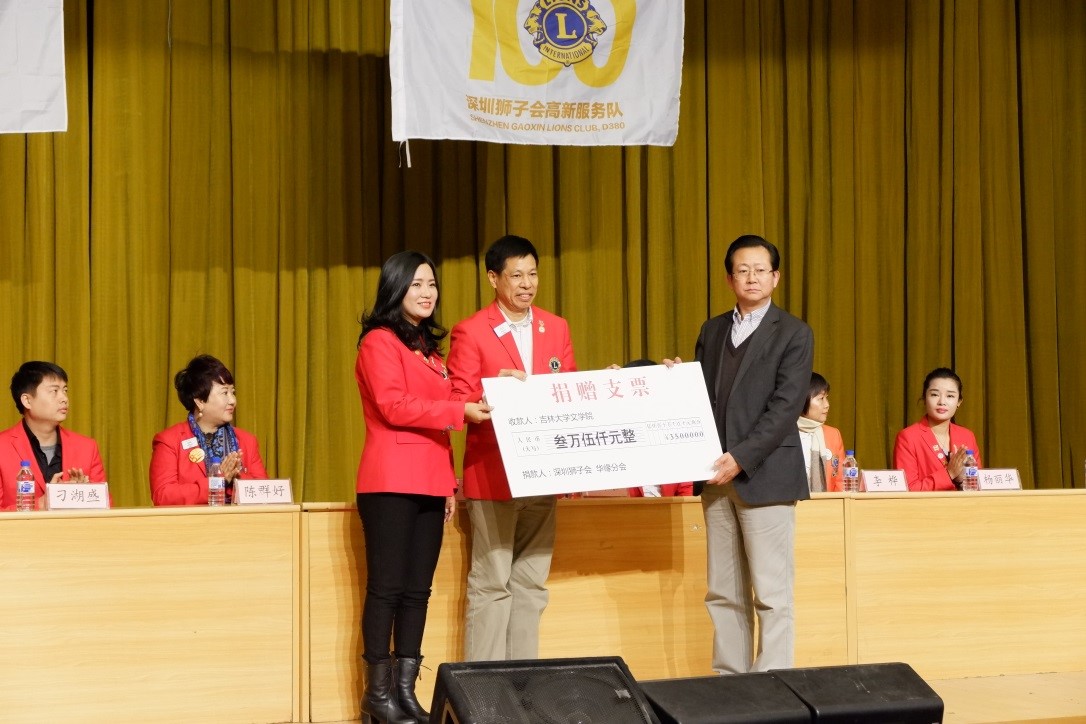 本次深圳狮子会共向文学院捐款8万元。郝淑媛老师宣布获奖者名单并由狮子会的狮兄狮姐为学生颁奖。颁奖结束后,获奖学生代表,博士研究生陈俊达进行发言,对文学院和狮子会的支持表示感谢,并表示在未来的学习中会带着梦想继续前进,刻苦努力,为传播中华国学文化做贡献。