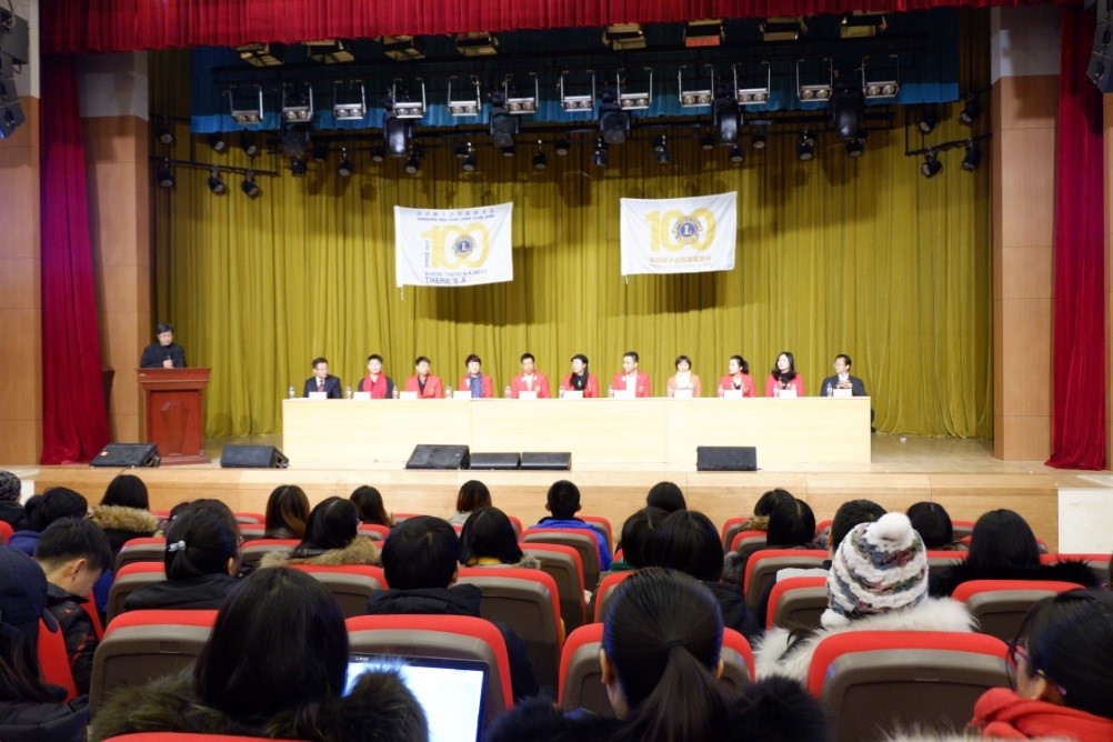 典礼在国歌和狮子会会歌中拉开帷幕。随后,党委书记康永刚老师致辞,首先对远道而来的狮子会成员表示欢迎,并对狮子会为文学院科研事业和助学工作的帮助表示感谢。接下来,狮子会华缘服务会会长罗观奇狮兄致辞,介绍了狮子会的历史并阐明了设立奖学金的初衷及帮扶对象。