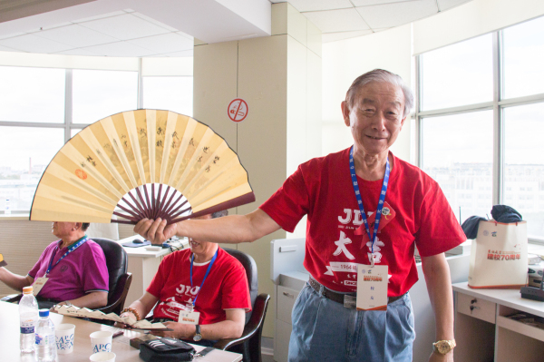 在校友漫谈环节中,老校友们纷纷畅谈人生,有的校友为大家准备了纪念折扇,分发给在座的校友作纪念,有的校友和大家分享养生秘笈,希望各位校友身体硬朗,也有校友深情地朗诵了自己为校庆创作的诗歌,在激扬文字中,如同回到了当年风华正茂的岁月。