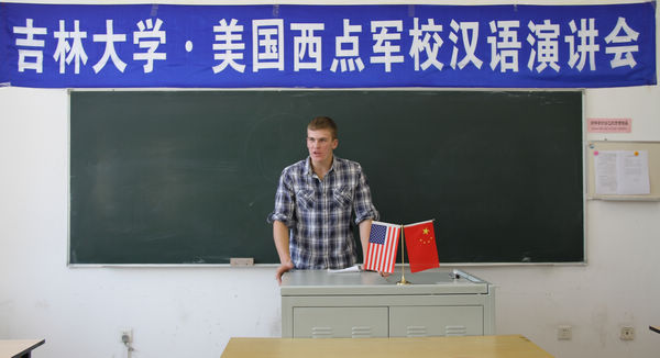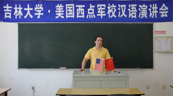 会上,美国西点军校汉语项目班的学员们根据自己在课堂上学到的汉语和中国文化知识,分别就“汉语中的谐音”“中国的独生子女政策”等话题,运用标准而流畅的汉语进行了生动有趣的演讲,表达了他们对汉语和中国文化以及一些社会现象的认识和思考。学员石傲天演讲了他对中国独生子女政策的理解和赞美,学员金相完讲述了万里长城修建的历史意义和孟姜女的故事,学员容迈修则就汉语同音词的问题比较了汉语中的吉利话和禁忌语。大家对学员们幽默生动流畅的汉语演讲报以热烈的掌声。