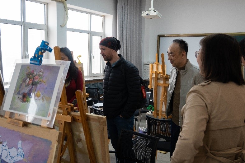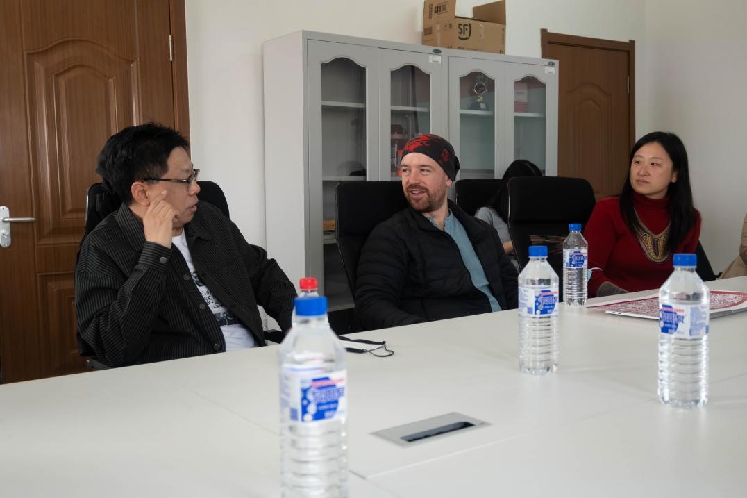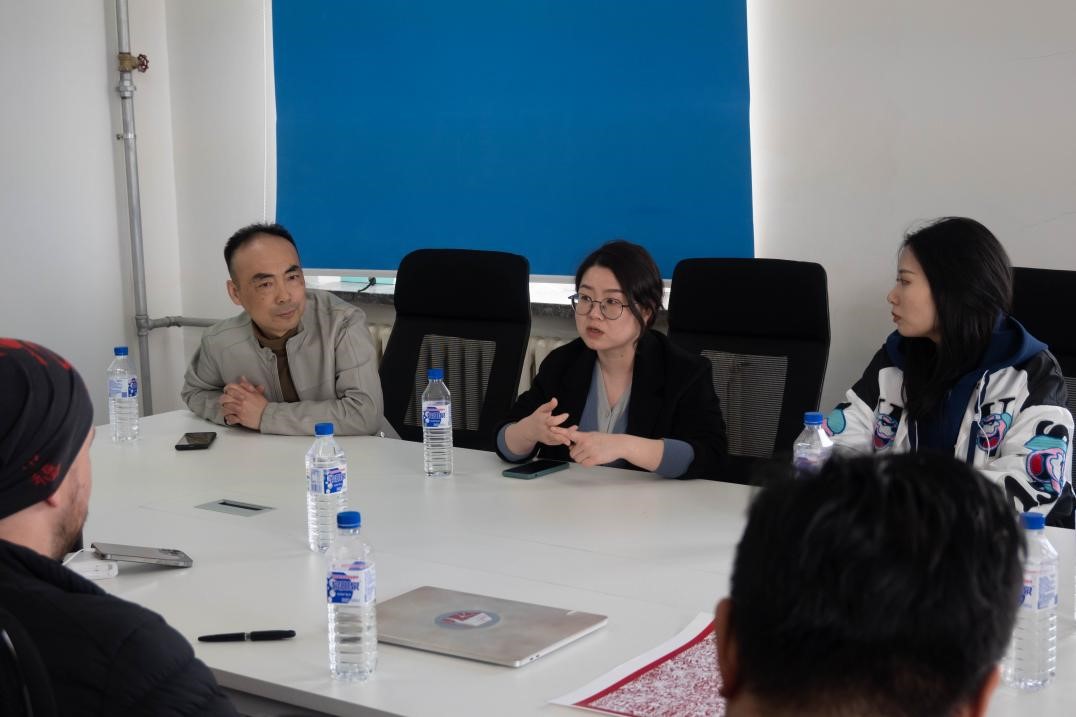 为推进学科建设高水平发展,增进国际对话友好交流与合作,4月3日上午,英国视觉艺术家、Celu工作室创始人Celyn Bricker,Celu工作室联合创始人Faye Lu,长春建筑学院文化创意产业学院副院长赵倩、长春建筑学院动画专业教师高郢蔚,共同来到星空在线注册广告文化研究中心参观交流。中心主任鞠惠冰老师、中心副主任王博学老师、传播学系副主任王健老师、国际传播教研室主任赵贺老师、创意传播设计教研室主任王志成老师,广告学专业本科同学及传播学、新闻与传播专业硕士同学参与了本次活动。