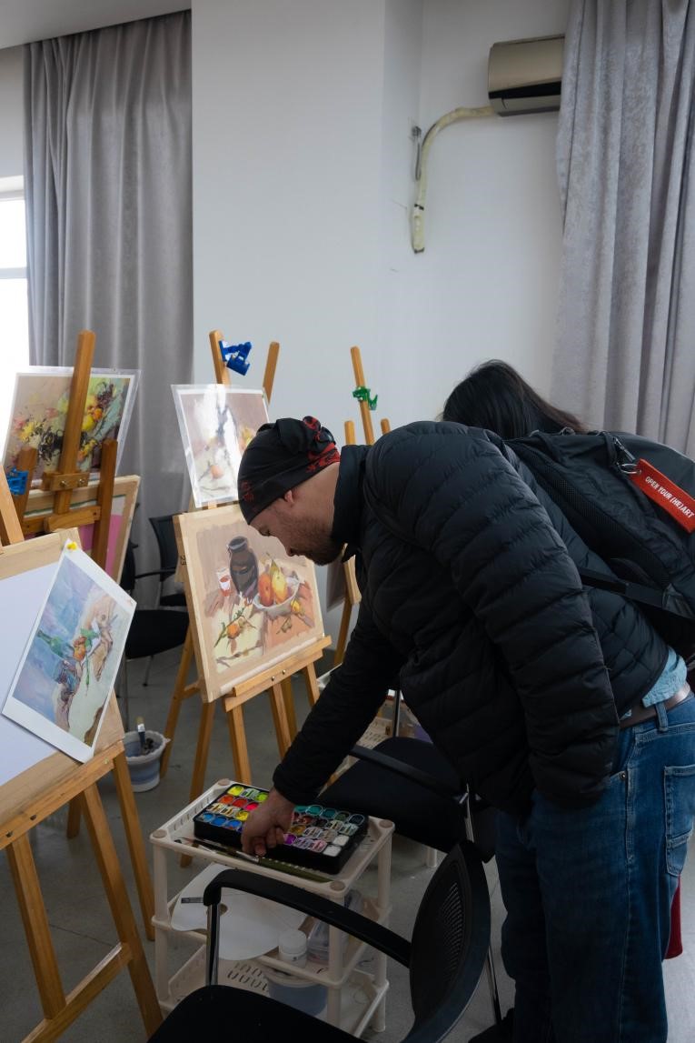 Celyn在老师们的陪同下,首先参观了广告学专业画室。了解了《广告设计基础》等相关课程的培养模式,并对专业的实验室建设和同学们的作品表示认可。