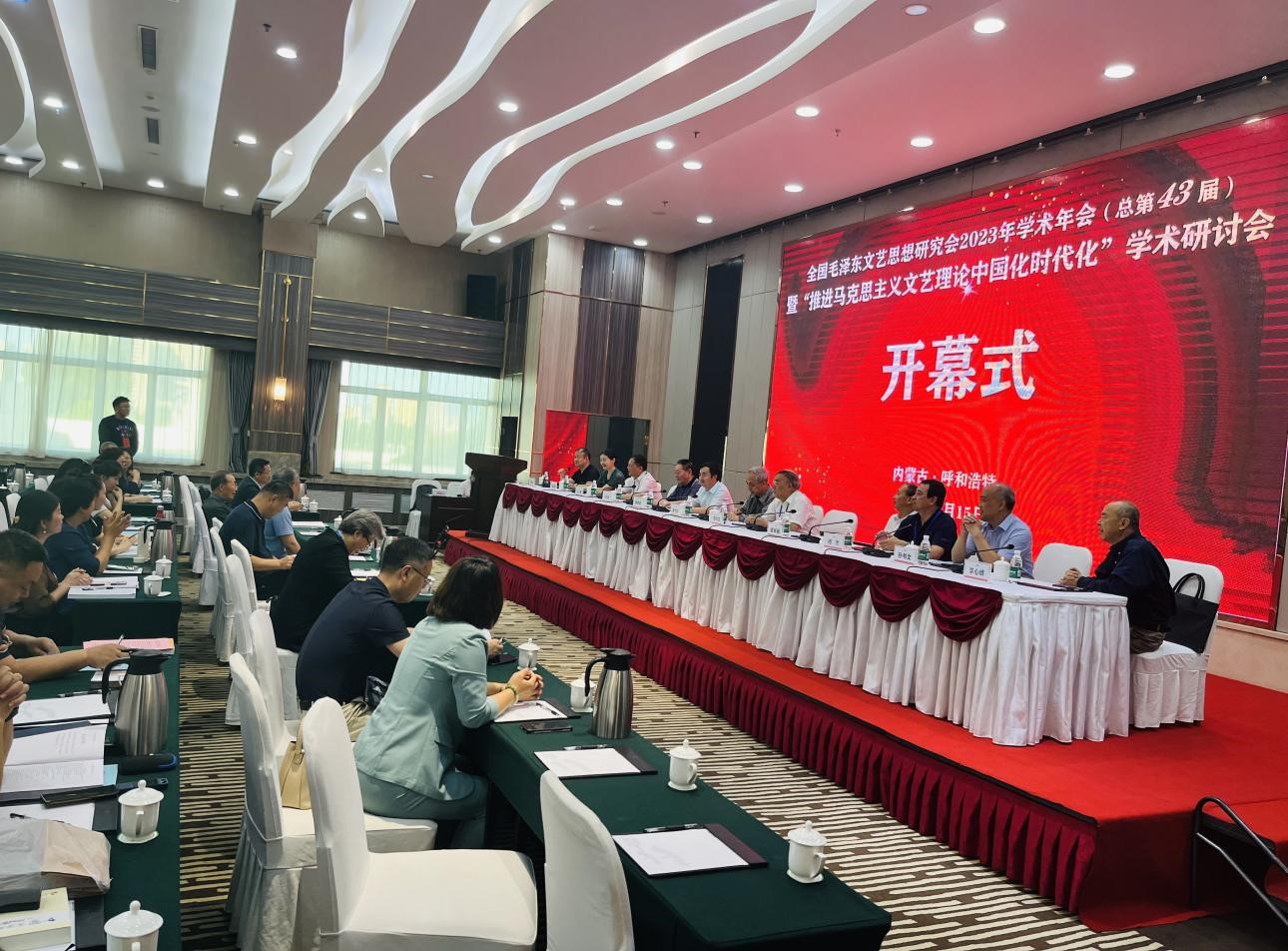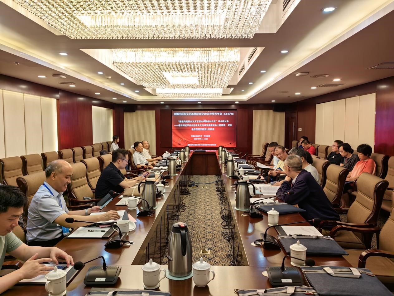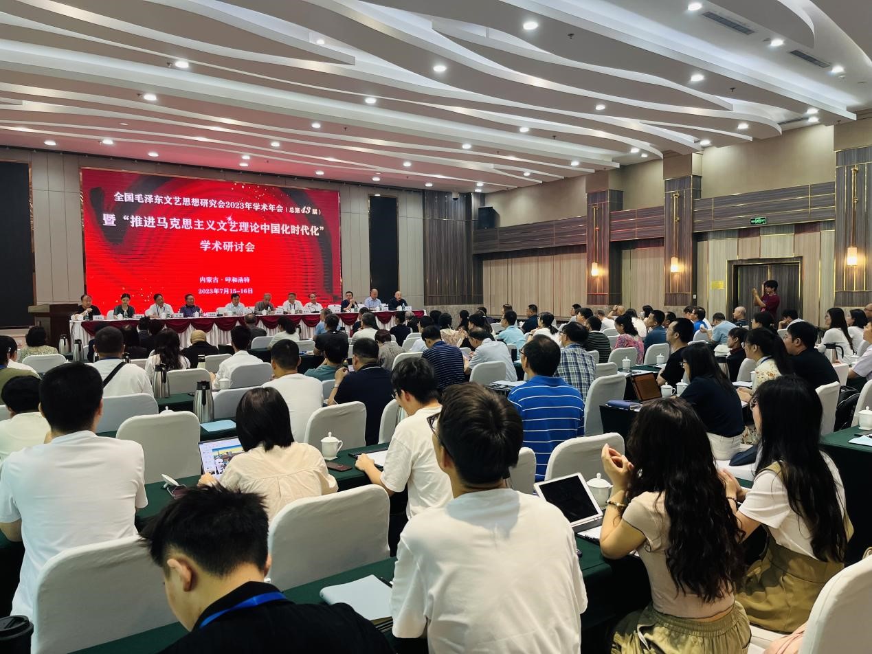 值毛泽东同志诞辰130周年之际,全国毛泽东文艺思想研究会2023年学术年会(总第43届)暨“推进马克思主义文艺理论中国化时代化”学术研讨会于7月15日至16日在内蒙古自治区呼和浩特市召开。会议由全国毛泽东文艺思想研究会与内蒙古财经大学人文学院联合主办,星空在线注册中国当代马克思主义文艺学研究中心、《星空在线注册社会科学学报》《文艺理论与批评》《学习与探索》《毛泽东邓小平理论研究》《福建论坛》《中国文学研究》《华夏文化论坛》协办。来自北京大学、中国社科院、中国艺术研究院、上海社科院、中国传媒大学、山东大学、山东师范大学、中南民族大学、武汉大学、星空在线注册等高校及科研机构的一百余位专家学者出席了会议。