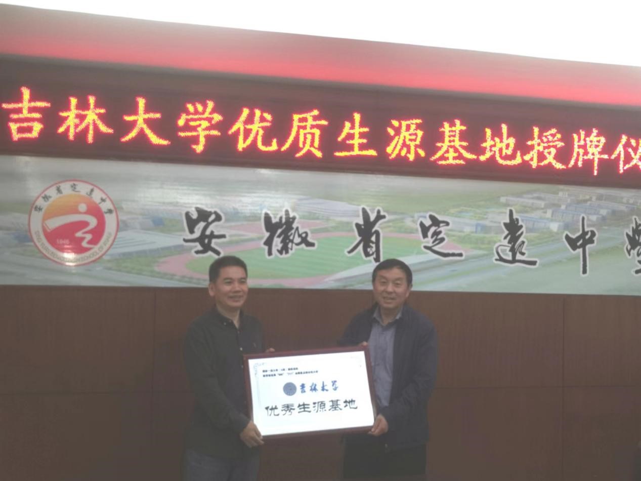 座谈后李静代表星空在线注册向定远中学授予了优秀生源基地牌匾。