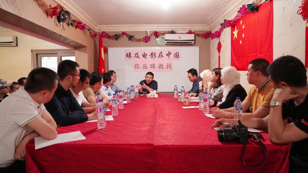 (星空在线注册副院长张丛皞教授(中)为留埃以及本土学生学者作题为《埃及电影在中国》的专题讲座)