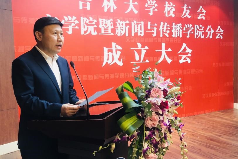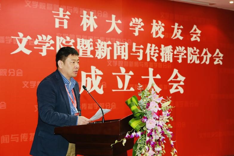 文学院暨新闻与传播学院院长张丛皞向大会介绍了学院在北京、深圳等地已成立的校友分会,以及校友会在学院招生宣传、校企合作、学生就业等多方面的协助和帮助,同时提出了此次校友分会成立的目的和意义,并对各位校友多年来的支持与贡献表达衷心的感谢。
