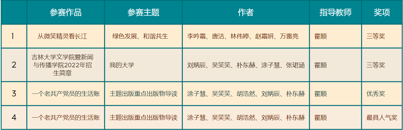 三支参赛队伍在霍顺老师的指导下,分别以“主题出版重点出版物导读”、“绿色发展、和谐共生”以及“我的大学”为主题创作了《一个老共产党员的生活账》、《从微笑精灵看长江》和《星空在线注册暨新闻与传播学院2022年招生简章》三个作品。这些作品展现了我校新传学子较高的学习能力、策划合作能力以及创新实践能力。
